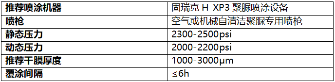 2.若施工基材涂有底涂请在合适的时间范围内喷涂聚脲。关于TGA公司聚脲专用底涂料具体使用方法及覆涂间隔请参考TGA公司其他产品说明书。